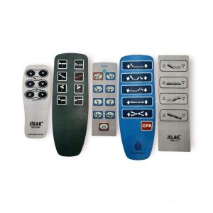لیبل یا ممبران(برچسب روی ریموت) ریموت کنترل دارای تعداد کلیدهایی هست که نوع ریموت را و نحوه کاربرد آن را نشان میدهد. ممبران ریموت کنترل بر روی انواع ریموت کنترلها قابل نصب است ومقاومت بالایی در برابر رنگ پریدگی و خرابی در اثر تماس با مواد استریل دارند. مواد تشکیل دهنده و متریال اصلی پلی کربنات است و با توجه به نوع ریموت کنترل متفاوت است.